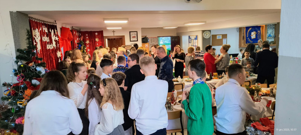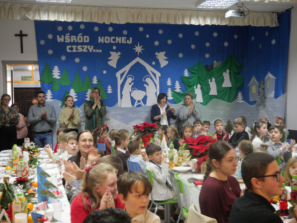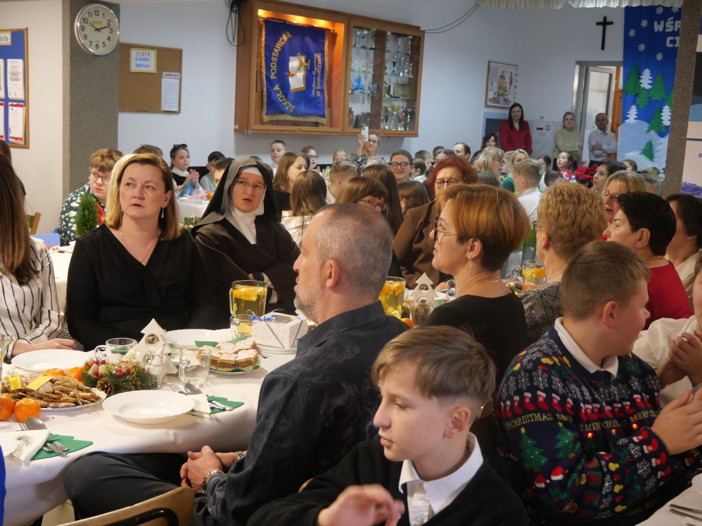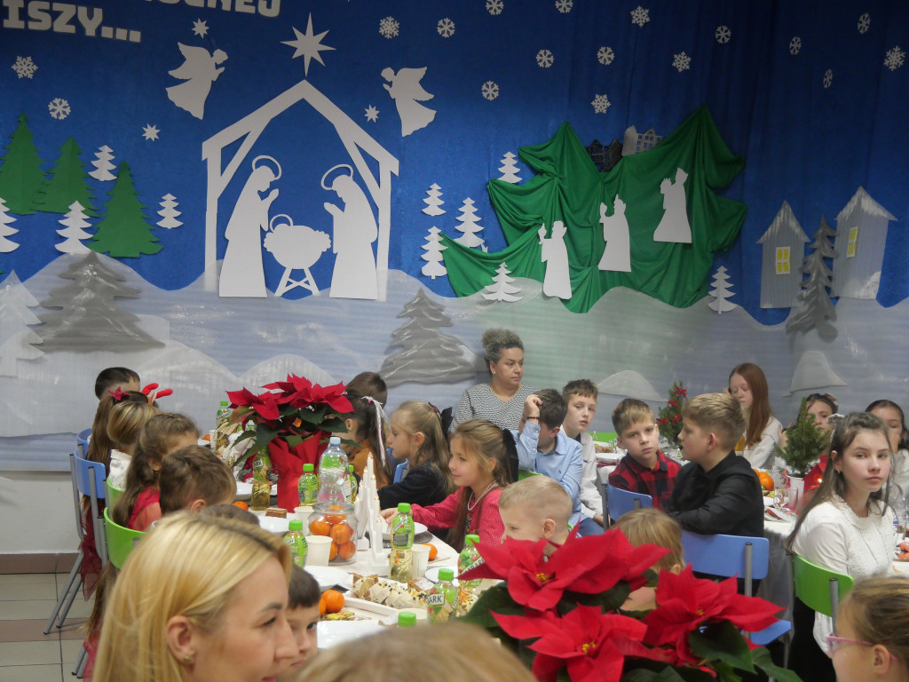 Był wspólny stół, barszcz, ryba, dzielenie się opłatkiem i śpiewanie kolęd — czyli to, co w Wigilii najważniejsze. Jak co roku nie zabrakło też emocji związanych z rozstrzygnięciem konkursów: na bożonarodzeniowy stroik, kartkę świąteczną oraz poznaliśmy szkolnego mistrza tenisa stołowego.