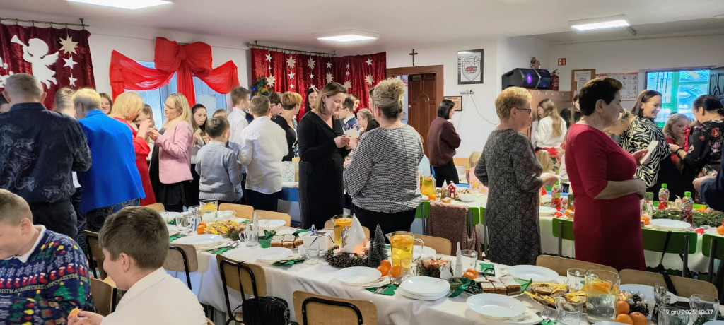 19.12.2025 r. odbyło się spotkanie wigilijne w Szkole Podstawowej w Skrudzinie i było ono dokładnie takie, jakie powinno być — wspólne, radosne i pełne dobrej energii. Wszyscy razem przeżyliśmy naprawdę piękny czas.
