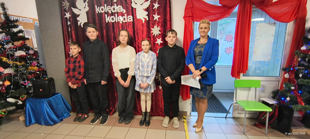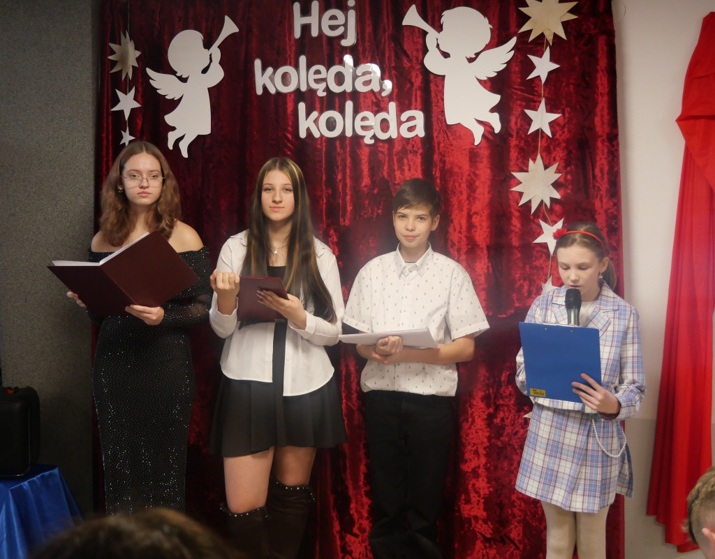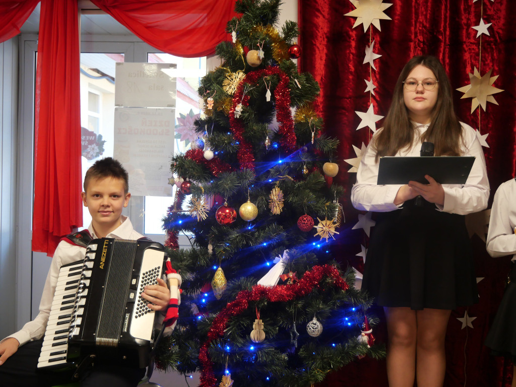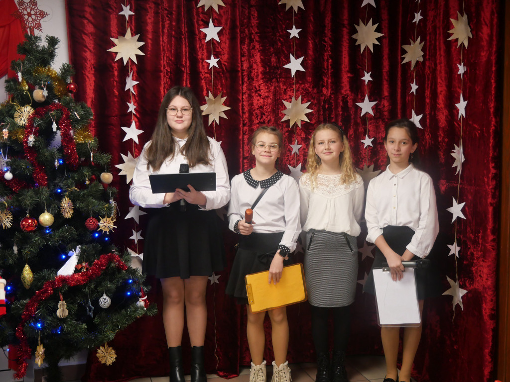 Klasa 8 przygotowała część artystyczną, a dziewczęcy chórek z klas 5 i 6 dołożył swoją muzyczną cegiełkę. Wszystko po to, by wprowadzić nas w bożonarodzeniowy nastrój — i trzeba przyznać: udało się w stu procentach. Magia świąt była wyczuwalna od pierwszej kolędy.