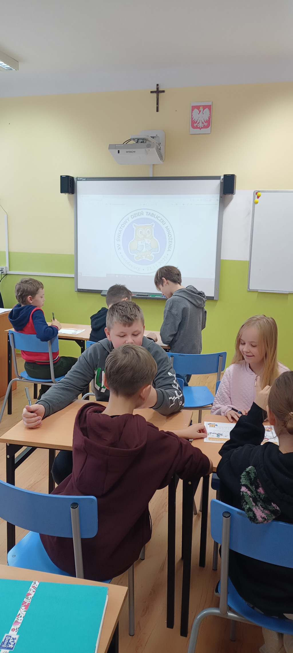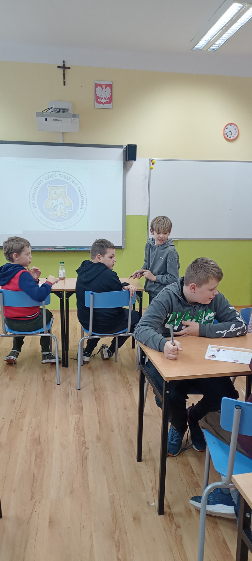 21 listopada to Międzynarodowy Dzień Tabliczki Mnożenia. Również w naszej szkole uczciliśmy tę okoliczność. Tego dnia uczniowie utrwalali znajomość tabliczki mnożenia poprzez zabawy, gry i konkursy matematyczne. Szkolny korytarz zdobiła okolicznościowa gazetka, a zwieńczeniem wydarzenia były szkolne zawody, których celem było wyłonienie Mistrzów tabliczki mnożenia w klasach 4, 5, 6 (odbyły się one 19 stycznia br.).