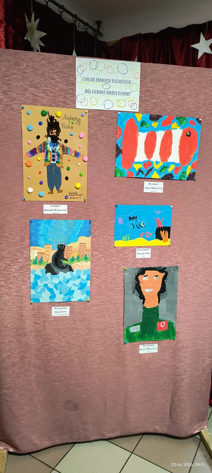 Fundacja „ Legalna Kultura”, która była organizatorem warsztatów „Otwarte drzwi do kultury”, ogłosiła wyniki Konkursu Plastycznego „Mój ulubiony bohater filmowy”. Prace konkursowe wykonali uczniowie naszej szkoły pod opieka pani Alicji Zbozień.